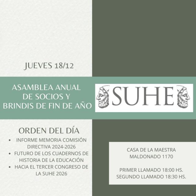 La Asamblea anual de socios tendrá lugar el jueves 18 de diciembre en la Casa de las Maestras (Maldonado 1170)